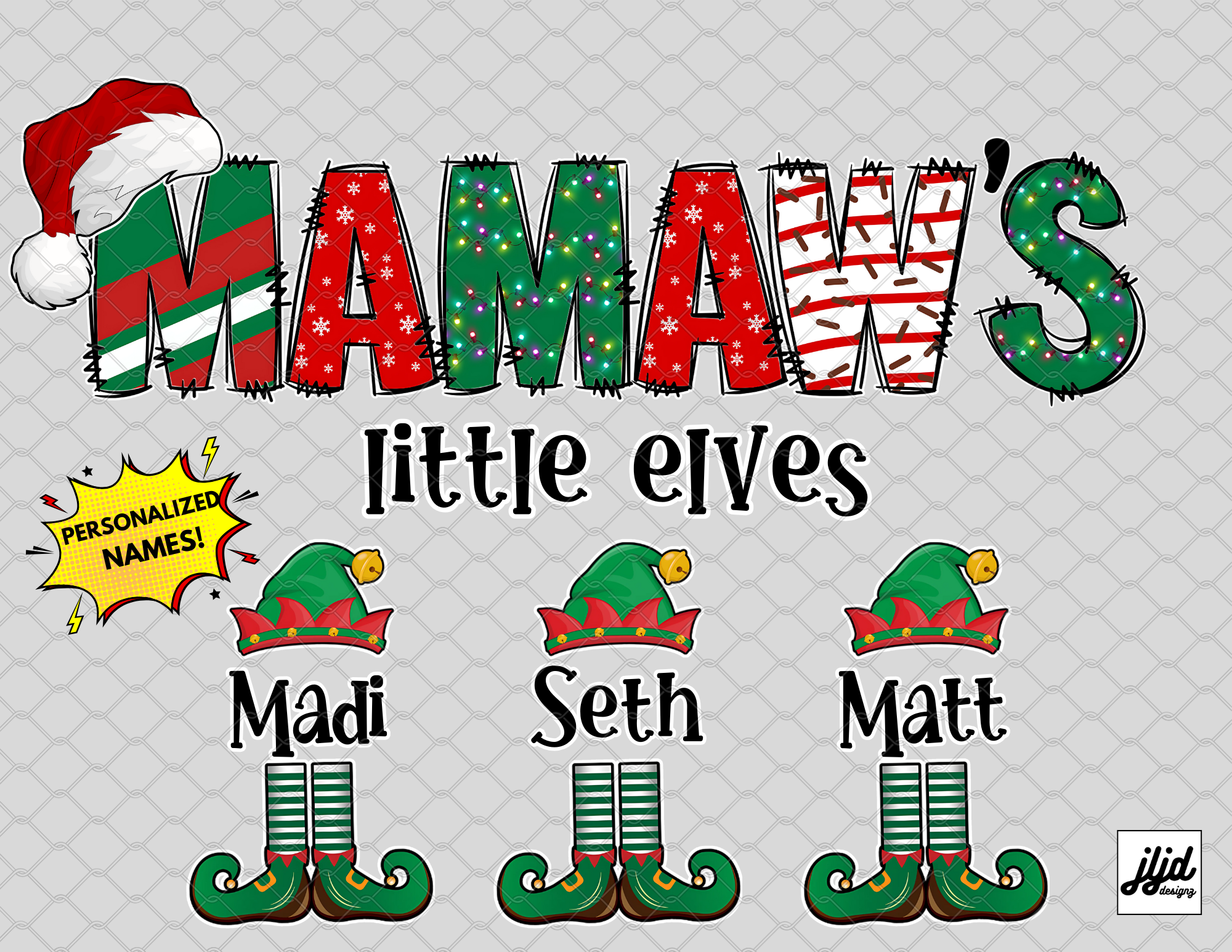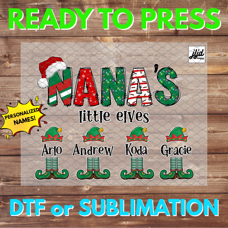 Elves with Names | Mom | Grandma | Nana | Custom | Personalize | Winter | Christmas | DTF | Sublimation