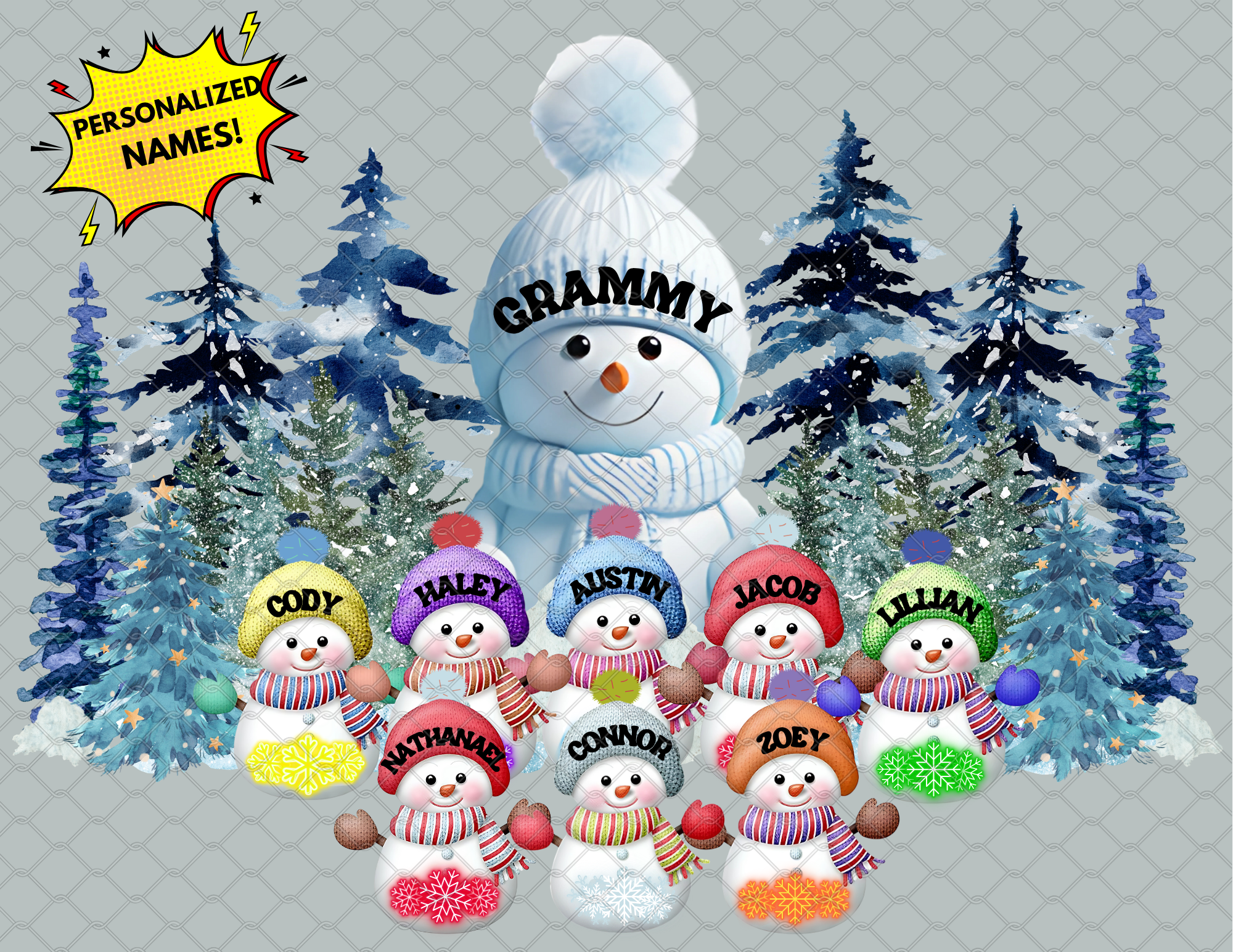 Snowman with Names | Mom | Grandma | Nana | Custom | Personalize | Winter | Christmas | DTF | Sublimation